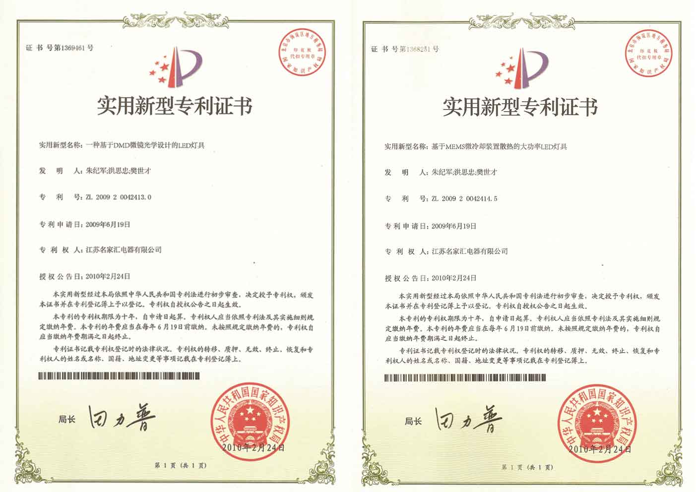 截至目前,“名家匯”在LED照明專項(xiàng)技術(shù)領(lǐng)域已擁有六項(xiàng)實(shí)用新型發(fā)明專利,一項(xiàng)國家發(fā)明專利。