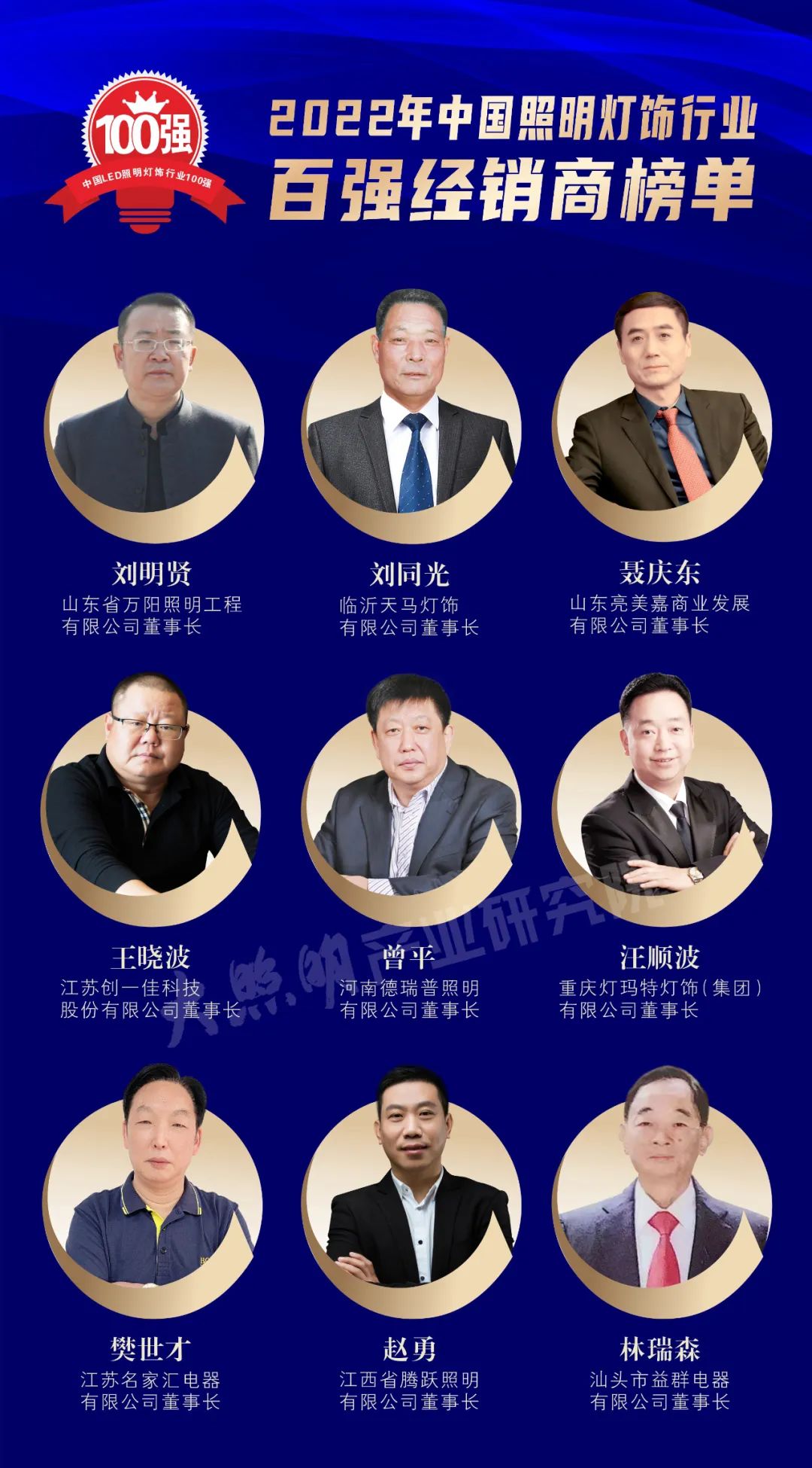 實(shí)力上榜!“2022年中國(guó)照明燈飾行業(yè)百?gòu)?qiáng)經(jīng)銷(xiāo)商”揭曉!